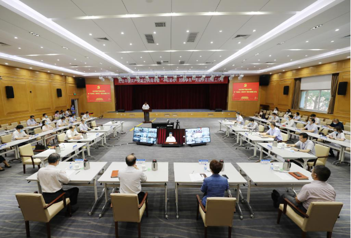 6月30日下午,bat365中文官方网站庆祝中国共产党成立99周年暨“不忘初心、对标争先”党建示范创建工作会在如心会议中心大报告厅召开。全体在校党委常委,各党群部门负责人、党建示范创建单位代表现场参会,各分党委(党总支)书记、副书记、班子成员、专职组织员,机关部处负责人,全校教师党支部书记,学生党支部书记,党员代表等通过视频参会。会议由党委副书记赵罡主持。