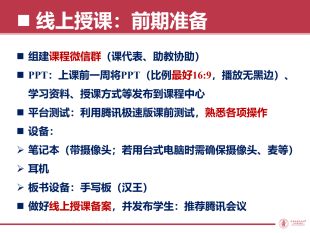 然后王珊珊老师和郝壮老师结合自己1-8周线上授课经历,对于网上授课从课前准备、授课过程和课后反馈三个方面分别介绍经验、建议和体会。