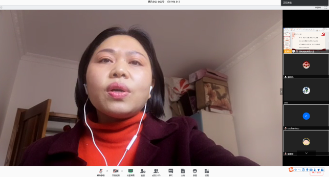 支部党员展开了激烈的讨论,曹明老师表示,今天的主题党日我听了一位医护家长的抗疫经历和两位从国外返回的同学的经历,感触很深。医护人员在抗疫中付出的汗水和努力,以及不怕牺牲的精神深深地感动了我。在湖北的一线工作是非常的危险和辛苦的,但这位党员阿姨不怕牺牲,勇于奉献,足以成为我辈楷模。两位回国的同学回来后能做到服从安排,遵照国家的要求隔离,也为我们这些居家工作的同志做出了表率。我们大家共同努力,一定会在不久的将来迎来抗疫的胜利!陈星老师讲到,从抗疫一线医务人员的真情表述中,我感受到了“病毒无情人有情”,正是这些不忘使命坚守阵地的白衣卫士捍卫了生命。同时,党和国家的制度优势也是我们最大的优势,这也是决定我们举国人民团结在党的周围共同战胜疫情的基础。赵颖秀老师表示,听了护士长阿姨奋战在疫情一线的分享、两位16级归国学生在国外留学及归国过程中关于国外疫情和归国后防疫的一些分享,以及科研学生团队对本次疫情的数据模拟和预测分析,再次感受到国家和党的力量,感受到科研对疫情起到的重大作用。今天的主题党日活动内容,让我非常感动和震撼,对我们学院的科研力量感到特别自豪。我想,我们每个人都可以在工作中、生活中为本次疫情做出应有的贡献,我们也一定可以战胜本次疫情。张野老师讲到,在这次主题党日学习中,通过奋战抗“疫”一线的医护工作者曾阿姨的经历分享,能够切实感受到在这场全国性的无声战“疫”中,最勇敢的人站在风险的最前端,用生命守护生命。舍小家保大家,有担当有责任,奔赴一线,令人动容,在此向奋战在抗疫一线的医护工作者致敬。其次,当新冠肺炎席卷全球的时候,才切实感受到了祖国的强大,国家的凝聚力,全国人民大团结,以及党中央的执行力,全国人民共下一盘棋,致使我们在这场疫情阻击战中取得的阶段性胜利,是社会主义制度优越性最好的印证。