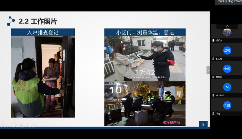 本次主题党日活动邀请到的五位参与防疫抗疫工作的学生,他们有奋战在抗疫一线的医生,也有下沉社区从事一线防控工作的社区工作者,有党员也有民主人士,有公务员也有普通的企业工作者。他们分别从自己的抗疫工作分享了自己防疫抗疫的经历以及心得体会。