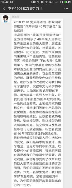 “忆峥嵘岁月,望灿烂未来”——经管学院本科1608党支部参观庆祝改革开放四十周年大型展览