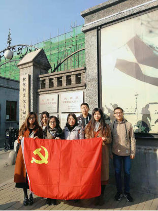11月17日下午,ZY1808(一)党支部联合ZY1708(一)党支部和SY1708(二)党支部以及学院发展对象一行来到了北京市东城区五四大街的新文化运动纪念馆。纪念馆又称北大红楼,是原北京大学旧址,是一座具有光荣革命传统的近代建筑,“北大红楼”在中国近代革命史上具有重要地位,是新文化运动、五四运动的发源地,李大钊、陈独秀、毛泽东等革命先辈都在这里留下了他们的身影。
