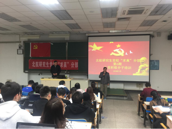 单伟老师对北航研究生党校“求真”分部的由来以及历年培养的成果加以介绍,强调“求真”党校的办学理念和培养宗旨。单老师还并对本次党课的主讲人北航经管学院党委书记刘志新教授进行介绍,不仅介绍了刘书记的科研成果,还介绍了其担任经管学院党委书记以来带领经管学院在党建方面取得的优异成绩。