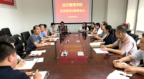 2018年6月21日,学院召开党支部书记联席会,学院党委书记刘志新主持会议,研究生指导主任单伟,学生工作负责人及全体教工支部书记、副书记参加了会议。