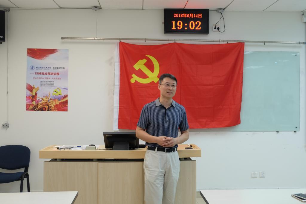 2018年6月14日晚19点,北航bat365中文官方网站1508第一党支部、1508第二党支部以及高水平运动员党支部在新主楼A949成功组织专题党课。此次党课由王晨同志主持,学院副院长张人千教授、学院专职辅导员朱鹏宇老师以及部分积极分子参加了此次党课。