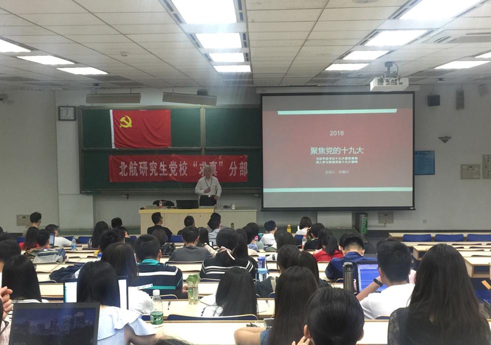 2018年5月8日晚7点,北航研究生党校“求真”分部第5期入党积极分子培训第二次党课在主M102顺利进行。此次党课的主讲嘉宾为经管学院退休老党员朱稼兴教授,培训主题为:聚焦党的十九大;与要求入党的同志谈入党问题;及创新思想的培养。