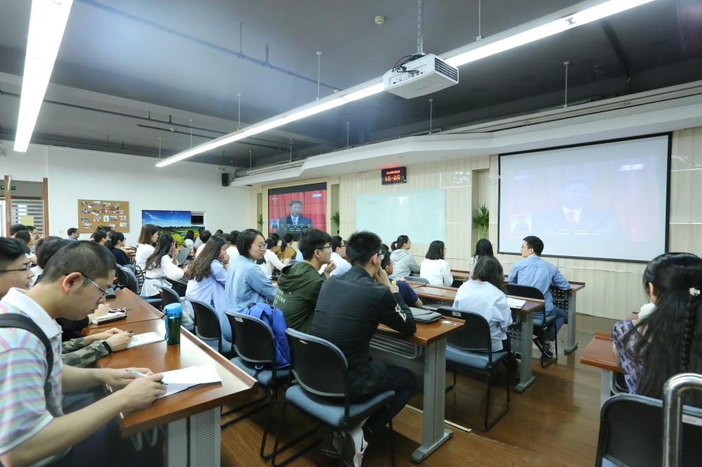 5月4日上午10:00,bat365中文官方网站师生在新主楼A622教室集中收看纪念马克思诞辰200周年大会,认真聆听习近平总书记在纪念大会上的重要讲话。学院分党委书记刘志新,教工和学生支部书记,教师和学生代表等80余名师生一同观看直播。