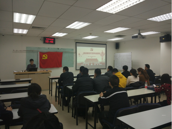 为进一步加深对十九大精神的贯彻学习,2018年1月14日,经管学院MB1608党支部在新主楼A1028,邀请学校学习十九大精神研究生宣讲团成员、经管学院ZY1608(二)党支部书记唐鹏飞同志,为支部做了题为《浅谈新时代青年的责任》的宣讲报告。此次活动由支部书记曹红海主持,支部23名党员参加了宣讲和讨论。