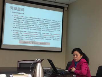 然后,周宁老师讲授了主题为“如何做合格党员教师”的高质量“微党课”。周宁老师通过对比1982年版党章和2012版党章,向大家揭示了我党在用更完善的理论体系武装自己,在用更强大的力量遏制腐败。随后,针对2012版党章,通过结合《论语》和《道德经》等传统典籍,周宁老师从中国传统文化的角度阐述和解读了共产党员义务。结尾时,周宁老师强调,作为教师党员,我们身负教书育人的重则,要用高尚的情操影响学生的“世界观、价值观、人生观”三观的形成。