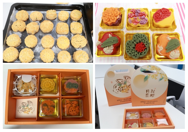 在制作过程中,参与者们精心挑选月饼的馅料、饼皮与模具。在烘焙老师的指导下,大家将25-28克的馅料与饼皮分别揉成圆形,然后将馅料包裹在饼皮中,最后将包好的月饼放入模具,轻轻按压,制作出各式精美的造型。部分参与者还巧妙地搭配了不同颜色的饼皮,制作出了独具创意的月饼图案。虽然制作月饼的过程需要极大的耐心与细致,但每位教职工都满怀热情,亲手完成了独具特色的专属月饼。烘焙后的广式月饼香气四溢,而无需烘焙的桃山皮月饼则凭借其丰富多彩的造型和艳丽的色彩,同样成为大家瞩目的焦点。每件作品不仅展示了教职工们的创意与审美,更体现了大家对传统工艺的传承与尊重。