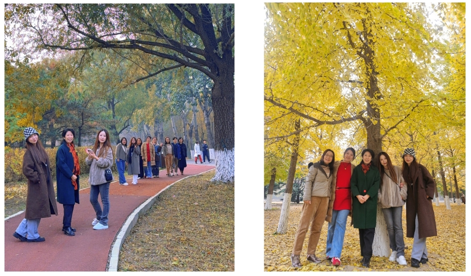 沿着蜿蜒的健步道,队伍缓缓前行。有人畅谈科研趣事,有人分享教学心得,也有人静静感受步伐与呼吸的节奏。偶有寒风拂面,却更衬出那一份同行的温暖。银杏的金、粉黛的粉、教师的笑颜交织成一幅流动的画卷——每一步都带着生活的温度,也承载着集体的力量。