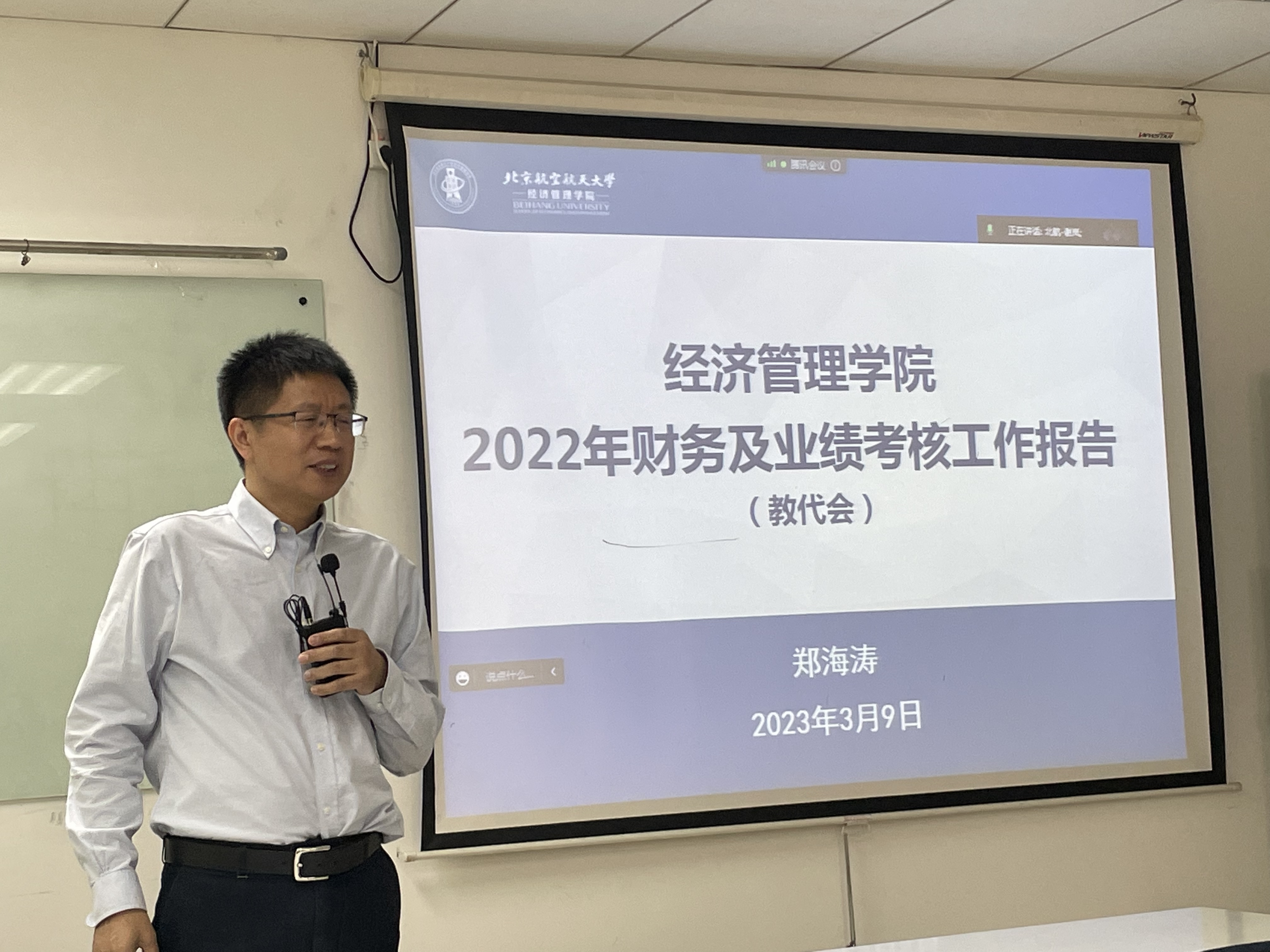 2023年3月13日中午,经管学院在新主楼A928以线上线下同步的方式召开了第十五届教职工代表大会提案答复会议暨财务预决算报告会。会议由学院党委书记郑海涛主持,共有三十余名教代会代表参加了此次会议。