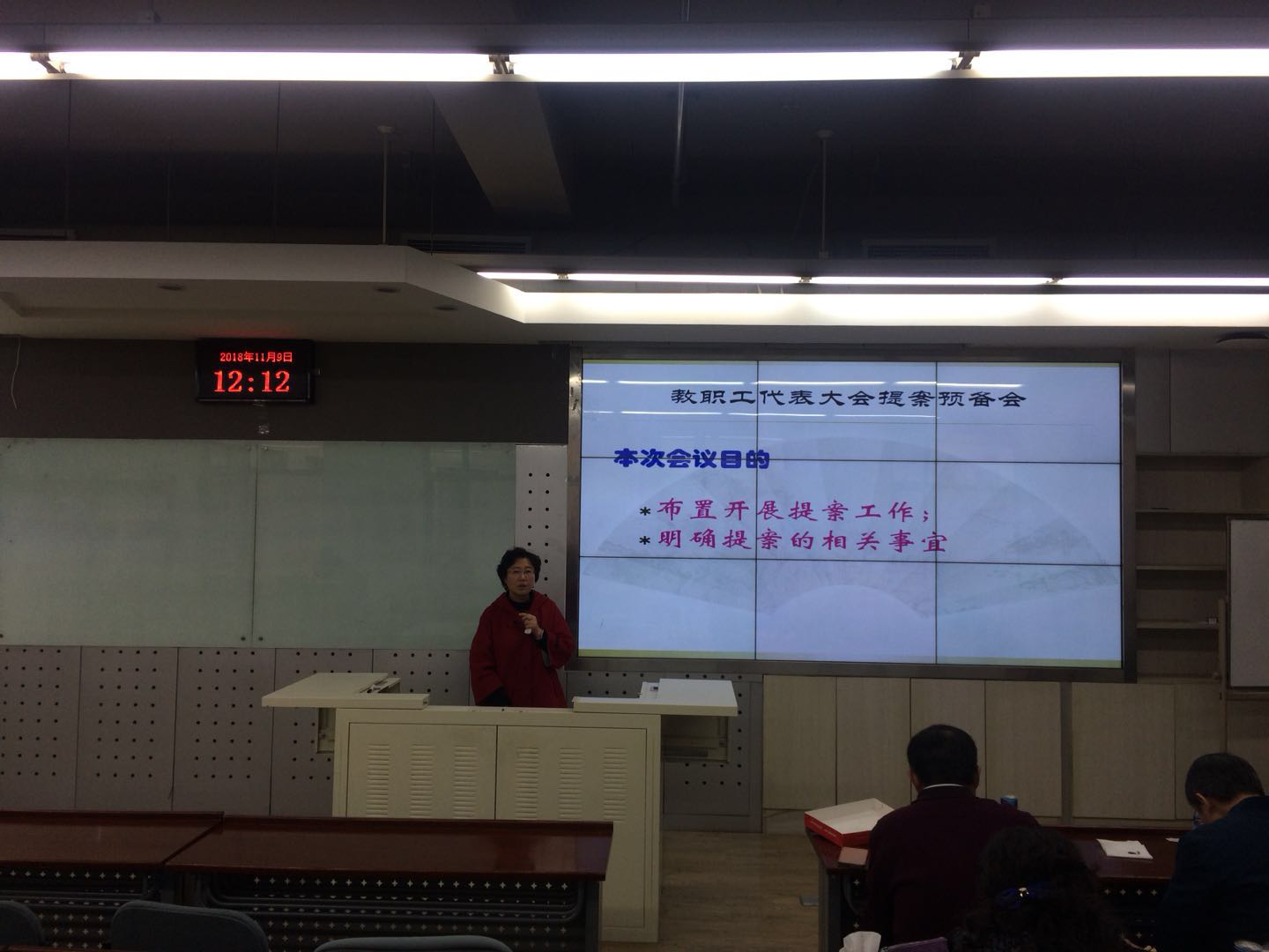 2018年11月9日中午,经管学院在新主楼A618室召开了第十二届教职工代表大会提案预备会议。学院工会主席谢岚就教代会相关文件、提案征集方法和渠道进行了介绍和部署。