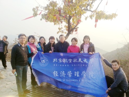 11月5日下午,在学院分党委书记刘志新和工会主席谢岚的带领下,经管学院15名教师参加了此次活动。香山高海拔557 米,一共有2152级台阶,是个健身和放松心情的好地方。一进公园,大家就迫不及待地沿着山路开始爬山了。我们的目标是山顶的香炉峰。大家兴致勃勃,边爬山、边交流、边拍照。不到一半的路程就已经大汗淋漓,但是大家都坚持着登上了山顶。站在山顶,迎着凉爽的微风、看着蓝蓝的天空和阳光照耀下的青山、红叶,每个人都感觉精神气爽,大家高兴地在山顶上拍照留念。