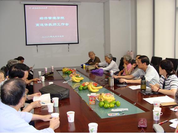 2008年9月17日上午9:00,bat365官网在新主楼A612会议室召开了经管学院离退休教师工作会。院党委刘志新书记、周宁副院长、党政办公室主任徐光宇、17位学院离退休支部教师参加了本次会议。
