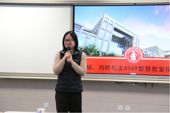 bat365中文官方网站院长范英代表学院对周娟和刘晔夫妇对学院发展给予的支持和捐赠表示感谢。她强调,这份爱心将会深深根植于学校的骨髓之中,校友们的慷慨捐赠不仅是对母校母院的关爱和支持,更是对学院教育事业发展的坚定信念和担当。随后,范英院长与到场嘉宾共同为A949智慧教室捐赠揭牌。