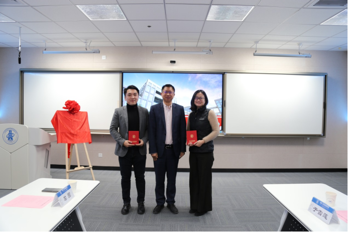党委书记郑海涛指出,校友是学院建设发展中不可或缺的力量,经管学院目前已有校友一万八千余名,每年的毕业生一千五百余名,学院是校友们拼搏前行的坚强后盾和永远温暖的家,希望各位校友常回家看看,积极为学院发展建言献策,将饮水思源、衔环反哺的感恩之情传承下去。随后党委书记郑海涛与党委副书记高超一起为两位校友及相关人员颁发学院捐赠纪念。