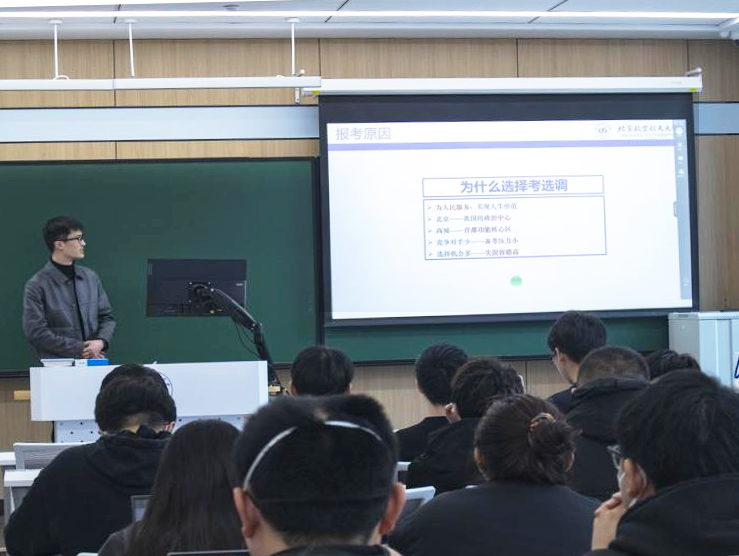 3月9日,bat365中文官方网站在主楼313举办北京选调生备考经验与职业选择分享会。本次活动特邀bat365官网优秀校友钟锐、夏宇烨回校,与在校学子展开面对面交流。两位校友结合自身丰富的公务员从业经历,围绕公务员职业发展路径、北京选调政策特点、备考策略及职业规划等主题进行了深入浅出的讲解。他们不仅分享了备考心得,还针对公务员职业发展前景、工作内容等同学们关注的问题进行了细致解答,为在场学子的就业方向提供了宝贵的经验与建议。