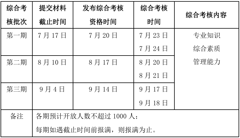综合考核共分三期,申请者仅可选择其中一期进行申请。