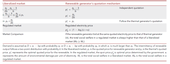 研究建立了一个理论模型,研究区域电力市场中发电厂商的最佳报价。结果显示,可再生能源发电厂商的报价机制可以分为两类,一类是独立于火力发电厂商的报价,另一类是跟随火力发电厂商的报价。在跟随火力发电厂商的报价情况下,天然气价格上涨会提高火力发电厂商和可再生能源发电厂商的报价。理论模型得出的结果支持了预期的天然气价格上涨或天然气供应短缺可能作为令人信服的借口,并导致电力价格上涨。