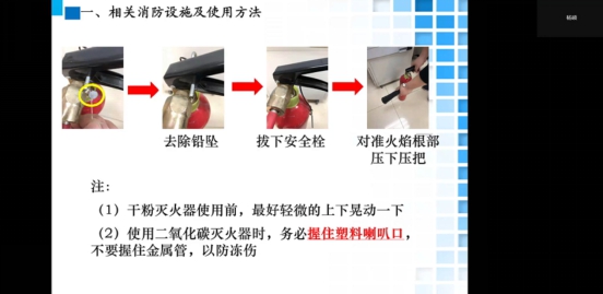 bat365中文官方网站实验中心于2022年3月11日下午组织实验中心有注册机位的同学参加线上消防安全培训(1学时课程),本次培训课由杨硕老师主讲。杨硕老师从火灾的基本常识、相关火灾案例宣讲、实验室内常见的消防隐患、相关消防设施介绍、灭火器使用方法、逃生的相关知识及新主楼逃生路线、如何正确拨打电话报告火警、实验室相关管理制度八个方面进行了细致的讲解,并通过案例讲解和视频演示让大家熟知消防安全各项技能。