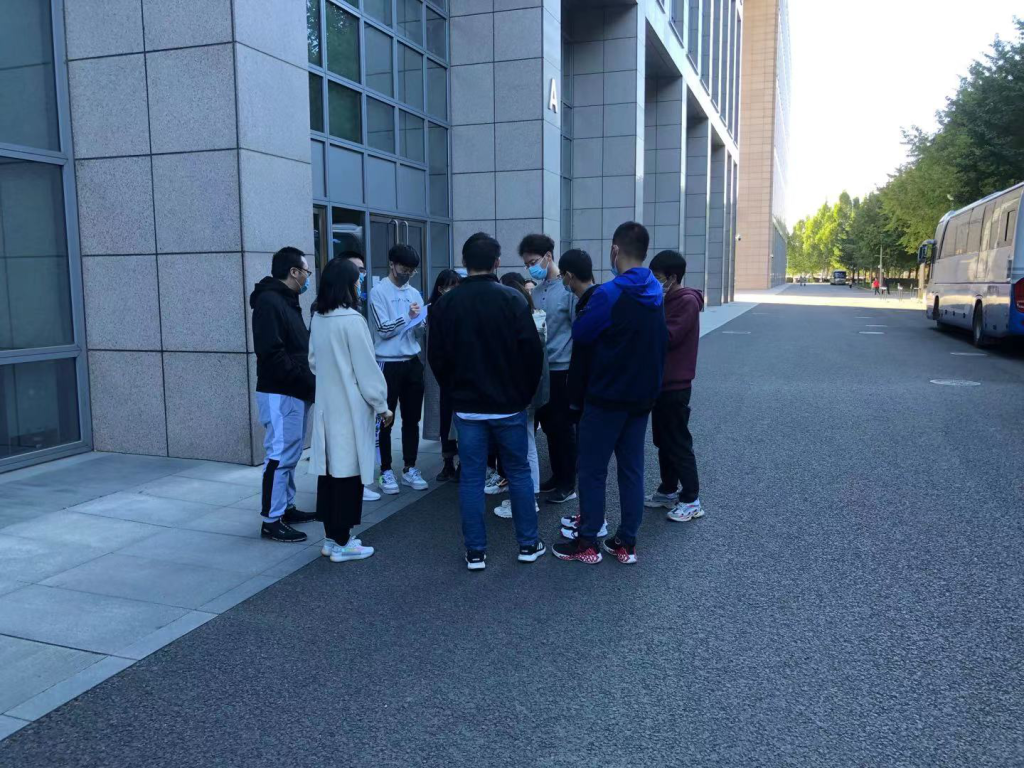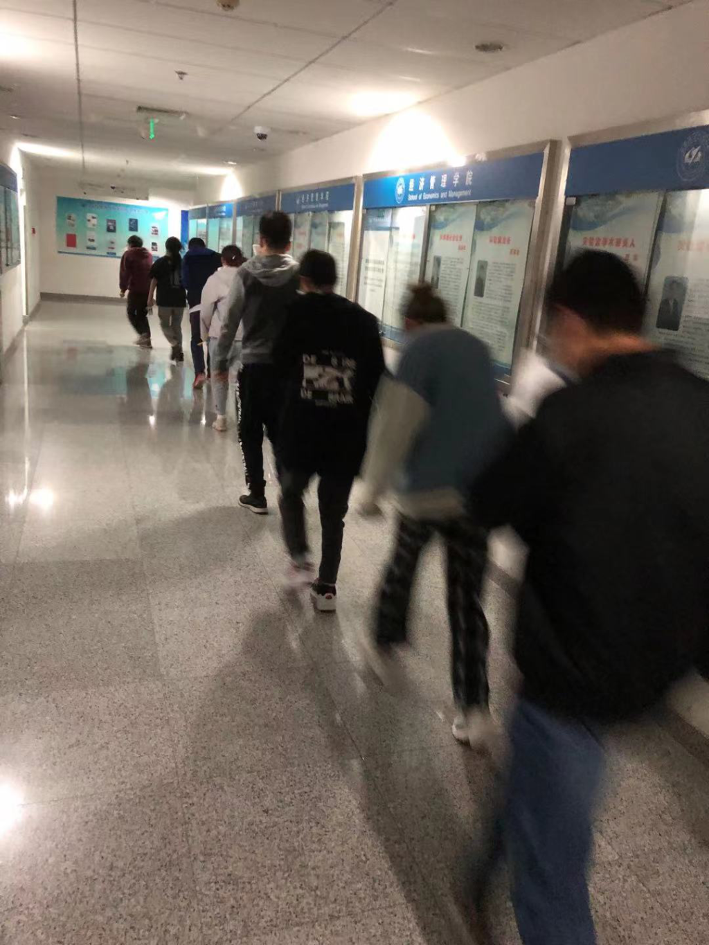 (4)学生撤离到新主楼楼下后,总指挥喊话:各副组长整理队伍,分别检查男女生人数是否准确,将情况报告给总指挥曹明。
