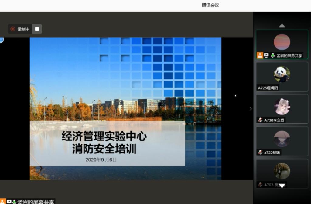 bat365官网实验中心于2020年9月6日上午10点通过腾讯会议在线组织实验中心有注册机位的同学参加消防安全培训(1学时课程),本次培训课由孟岩老师主讲。