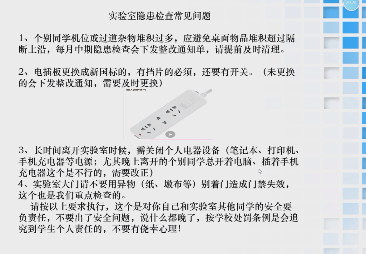 为进一步巩固师生消防安全意识及培养安全习惯,培育紧急逃生自救的能力,实验中心于2025年3月7日下午14点,通过在线腾讯会议形式为实验室师生进行安全教育培训,此次培训由实验中心孟岩老师主讲。