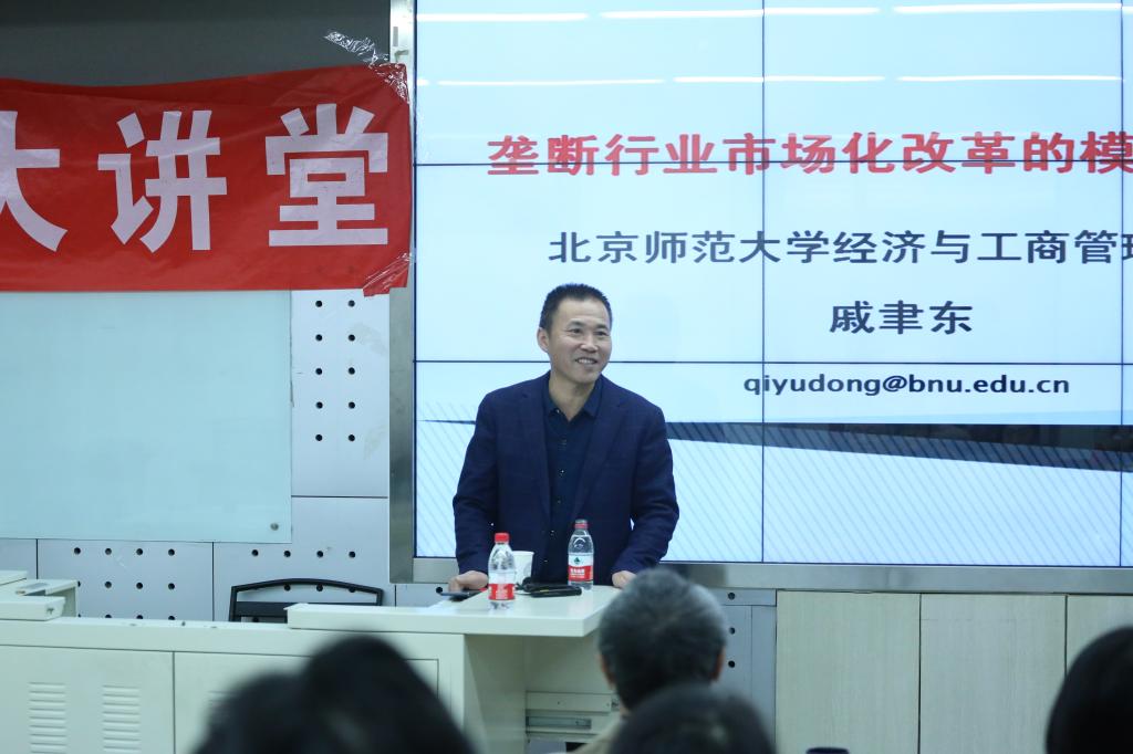在报告中,戚聿东教授突出提出在全面深化改革的新时代,垄断行业改革是经济改革的主战场,也是深化改革的重点焦点难点领域。而深化垄断行业改革的首项任务是对垄断行业进行竞争化改造。实践中体现为始自“网运分离”模式,终于“网运一体”的综合运营商模式。并强调垄断行业作为国有企业的集中领域,其改革时序路径的选择至关重要性。报告现场,40余名经管学院的老师和同学,在认真学习报告后,提出了许多相关的有趣问题,嘉宾与听众间互动气氛活跃,期待更多的学术交流合作。
