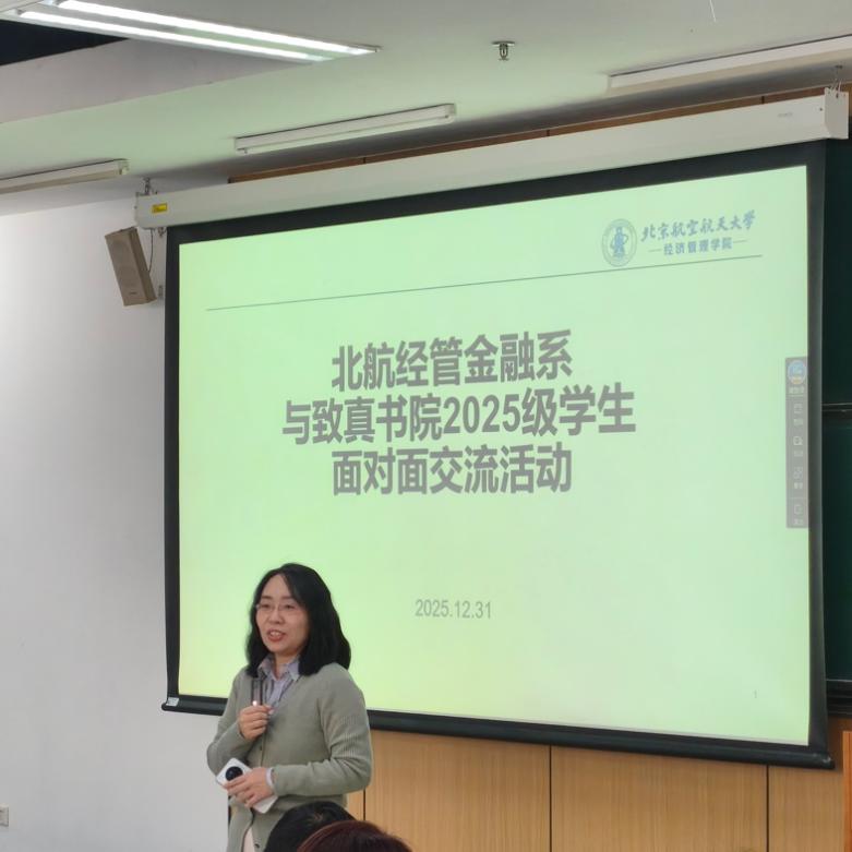 由北航经管金融系召集,由经管学院学生工作办公室和致真书院学生辅导员协助,“北航经管金融系师生与致真书院2025级学生面对面交流活动”于2025年12月31日(周三)下午14:00-15:30在北航沙河校区 J3-105 教室成功举办。本次活动金融系四位老师包括金融系主任部慧副教授、赵尚梅教授、谭小芬教授、大四学生班主任石丽娜博士,以及三位学生包括张婷(2021级保研留在北航金融专硕项目,院级优秀毕业论文)、王泽明(2021级保研留在北...