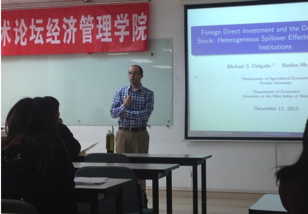 2013年12月11日下午,应bat365中文官方网站陈向东教授邀请,来自美国普渡大学经济学系的Michael S. Delgado教授为bat365官网师生做了一次精彩的学术报告。