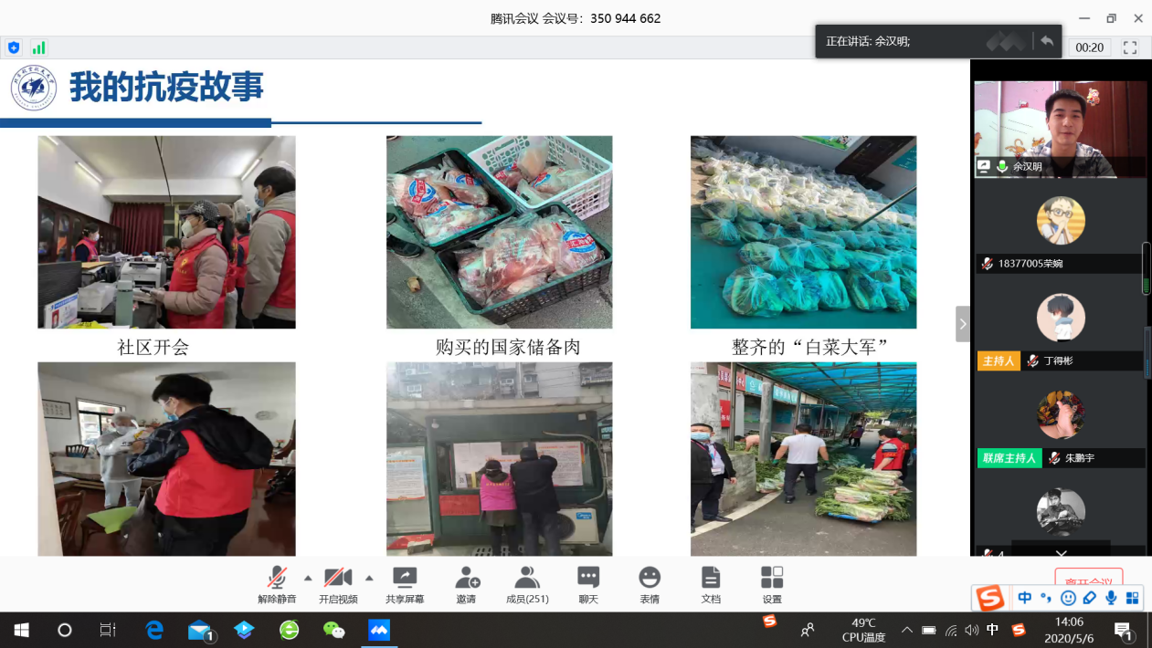 “青春抗疫,与国同航”主题学习日顺利举办 2020年5月6日(星期三)下午两点,“青春抗疫,与国同航”主题学习日活动顺利举办。本次学习日活动的主讲人是学生处“青春抗疫,与国同航”宣讲团成员,采用腾讯会议线上直播形式开展,bat365中文官方网站三百余名本科生参加了此次活动。宣讲开始,来自武汉的余汉明同学分享他在武汉做志愿者的故事。他提到怎么为武汉人民送上一碗热乎乎的米酒,怎样和其他15名志愿者...