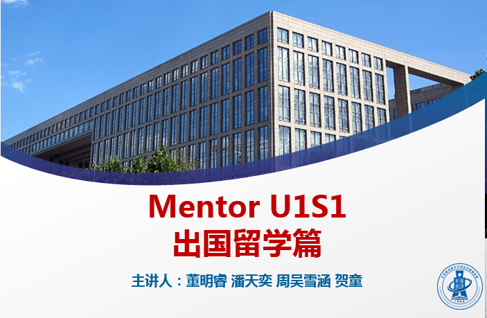 《MentorU1S1——出国留学篇》博雅课程顺利举办2020年4月1日14:00,Mentor U1S1系列活动之出国留学篇顺利举办,本次活动作为博雅课程面向经管学院所有年级开放,以腾讯会议线上直播形式开展。本次活动由辅导员张园园主持,辅导员白雪以及180余名学生参加了此次活动。此次活动邀请了2015级学姐周吴雪涵、贺童、2016级潘天奕和董明睿分享自己的申请经历。董明睿学长首先和大家分享了自己的个人申请经历,并结合...