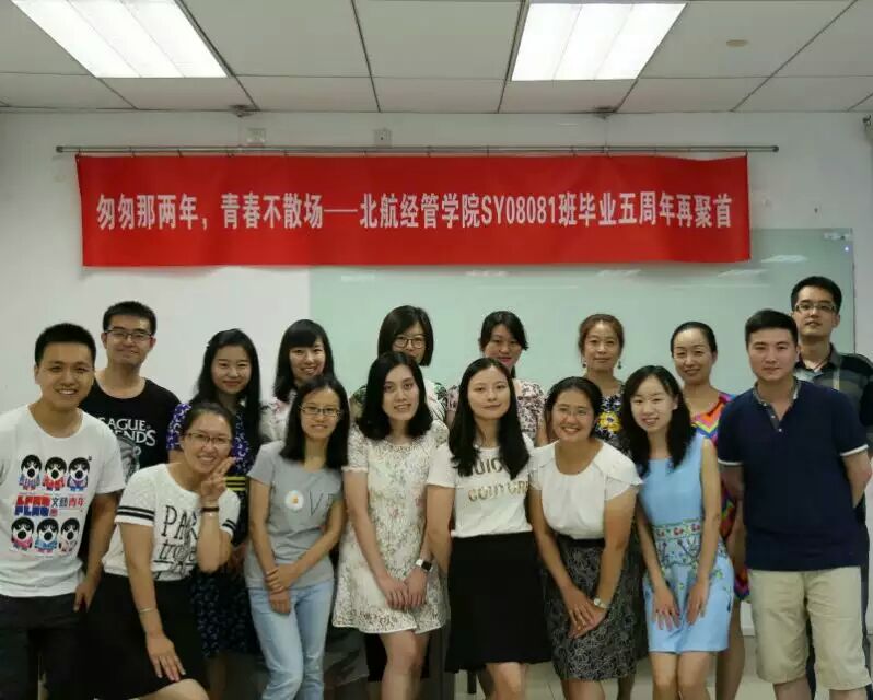 8月1日,北航经管学院SY08081班相聚母校举行了毕业五周年聚会。