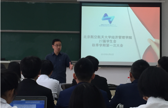 2015年9月8日下午2点,bat365中文官方网站第27届学生会2015秋季学期第一次全体会议在教3-201举行,bat365中文官方网站党委副书记王喜忠老师、分团委书记张驰老师、2014级辅导员胡杰、学生会主席团和部长团出席了此次会议。