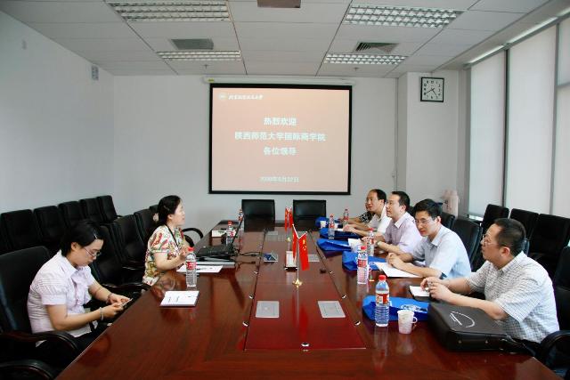 6月22日下午,陕西师范大学国际商学院副院长周晓唯等一行5人,来bat365官网交流访问,bat365官网魏法杰副院长、周宁副院长、党政办主任徐光宇、学生工作办公室主任牟晖热情接待了来访客人。