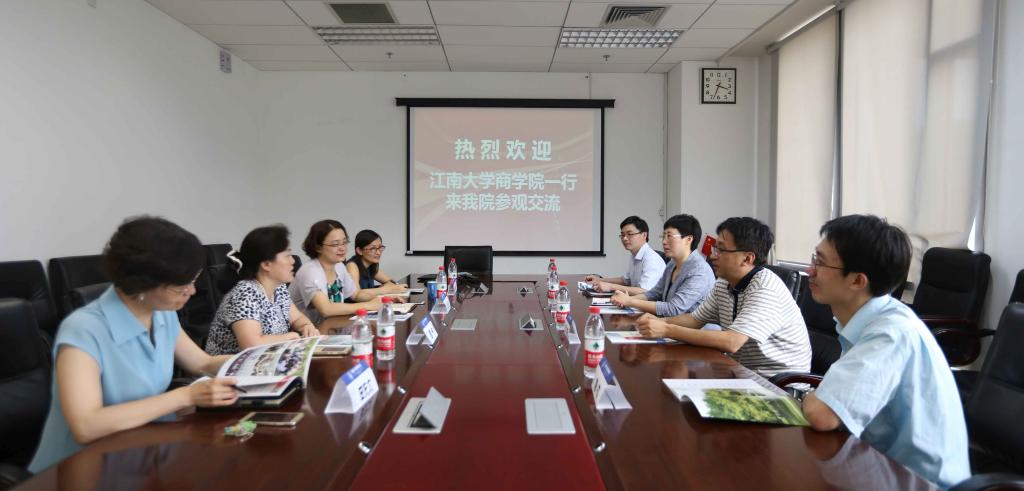 7月5日下午江南大学商学院党委书记李佳敏一行4人到bat365官网调研,bat365官网牟晖副院长在新主楼A612会议中心会见李佳敏一行,会议由bat365官网会计系周宁教授主持,MBA中心主任田东文、实验中心主任韩小汀出席了座谈会。