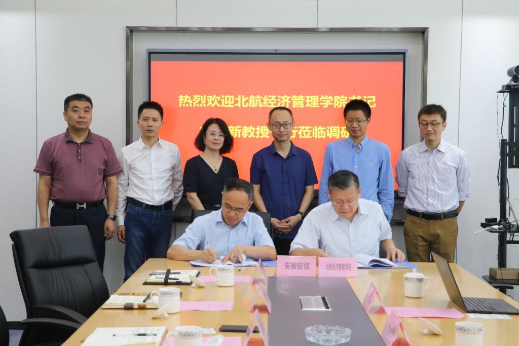 8月25日,北航bat365中文官方网站与安徽征信在安徽征信本部签署战略合作协议,为下一阶段深化校企合作奠定了良好基础。北航bat365中文官方网站党委书记刘志新教授、安徽征信党委书记阮传宏董事长代表双方在合作协议书上签字。北航bat365中文官方网站副院长郑海涛、副教授朱磊与安徽征信田继阳副总裁、朱婷红副总裁、傅强总监、董飞总监以及北航毕业的员工代表等出席了签约仪式。安徽征信阮传宏董事长对刘志新书记一行来访表示热烈欢迎,介绍了公司...
