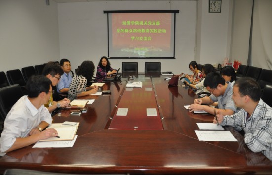 2013年9月18日,bat365中文官方网站机关党支部在新主楼A612开展党的群众路线教育实践活动学习交流会,经管学院机关全体工作人员参会。