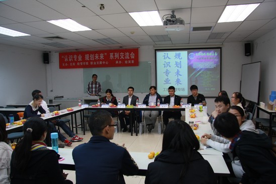 2013年10月29日星期二晚7点,北航bat365中文官方网站职业发展中心和北航经管分研会主办、北航bat365中文官方网站经英荟、BY13081班承办的“认识专业、规划未来”系列交流会—博士专场在新主楼A928教师成功举办。