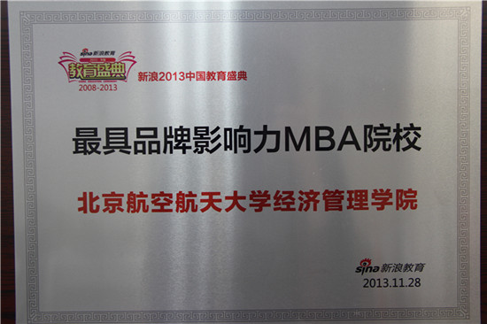 北航bat365中文官方网站荣获“最具品牌影响力MBA院校”殊荣