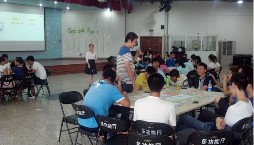2014年7月3日和4日经管学院实验中心邀请用友公司在沙河新校区多功能厅为大一学生开展先天特质沙盘课程体验。
